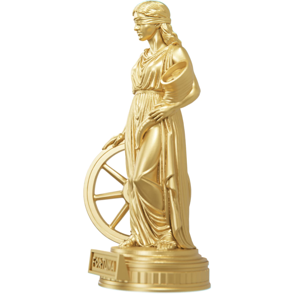 Fortuna era a deusa romana do destino e da sorte, uma figura que caminhava entre o acaso e a providência. Representava tanto a boa fortuna quanto o infortúnio, pois para ela tudo dependia do giro da roda que simbolizava o ciclo imprevisível da vida. Era adorada por reis, soldados e plebeus — todos igualmente conscientes de que, diante dela, ninguém tinha controle total do próprio destino. Fortuna podia elevar um homem à glória em um dia e lançá-lo à ruína no seguinte, sempre com o mesmo sorriso enigmático.