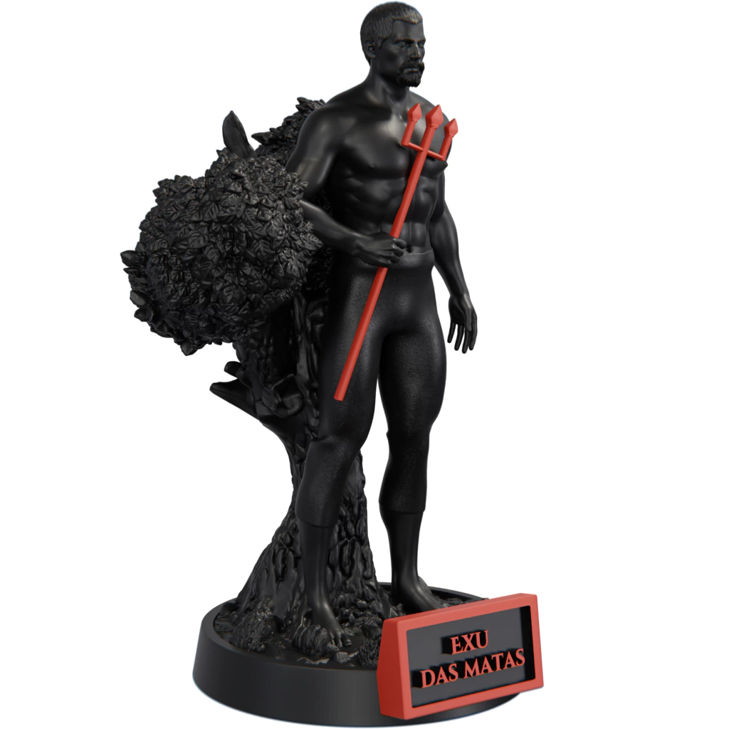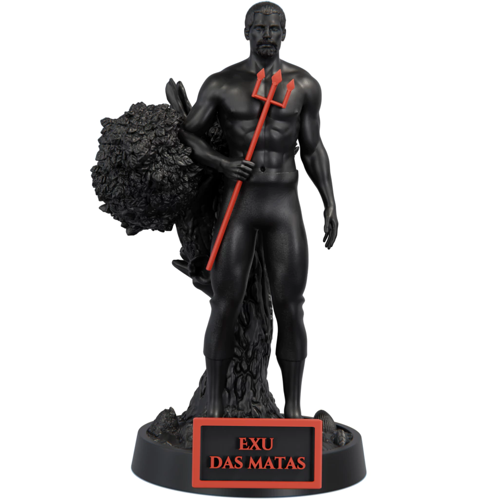 Exu da Mata é uma entidade que vive entre os segredos da floresta e o poder silencioso da natureza. Sua energia é ligada à força das árvores, aos ventos que cruzam as folhas e ao mistério das trilhas que poucos têm coragem de seguir. Ele é o guardião das encruzilhadas verdes, onde o espiritual e o terreno se encontram em harmonia. Seu domínio é o da vida em constante movimento — o ciclo da renovação, da morte e do renascimento que a própria mata ensina a cada estação.