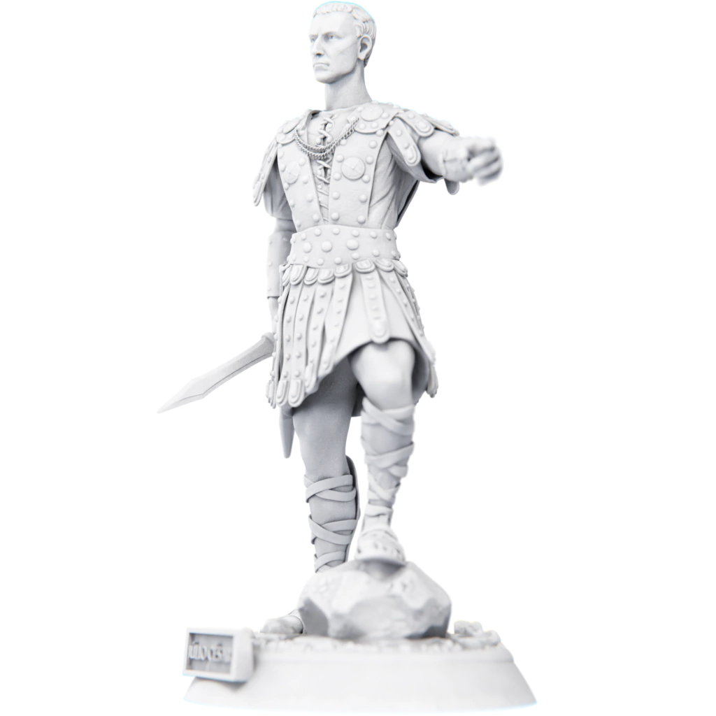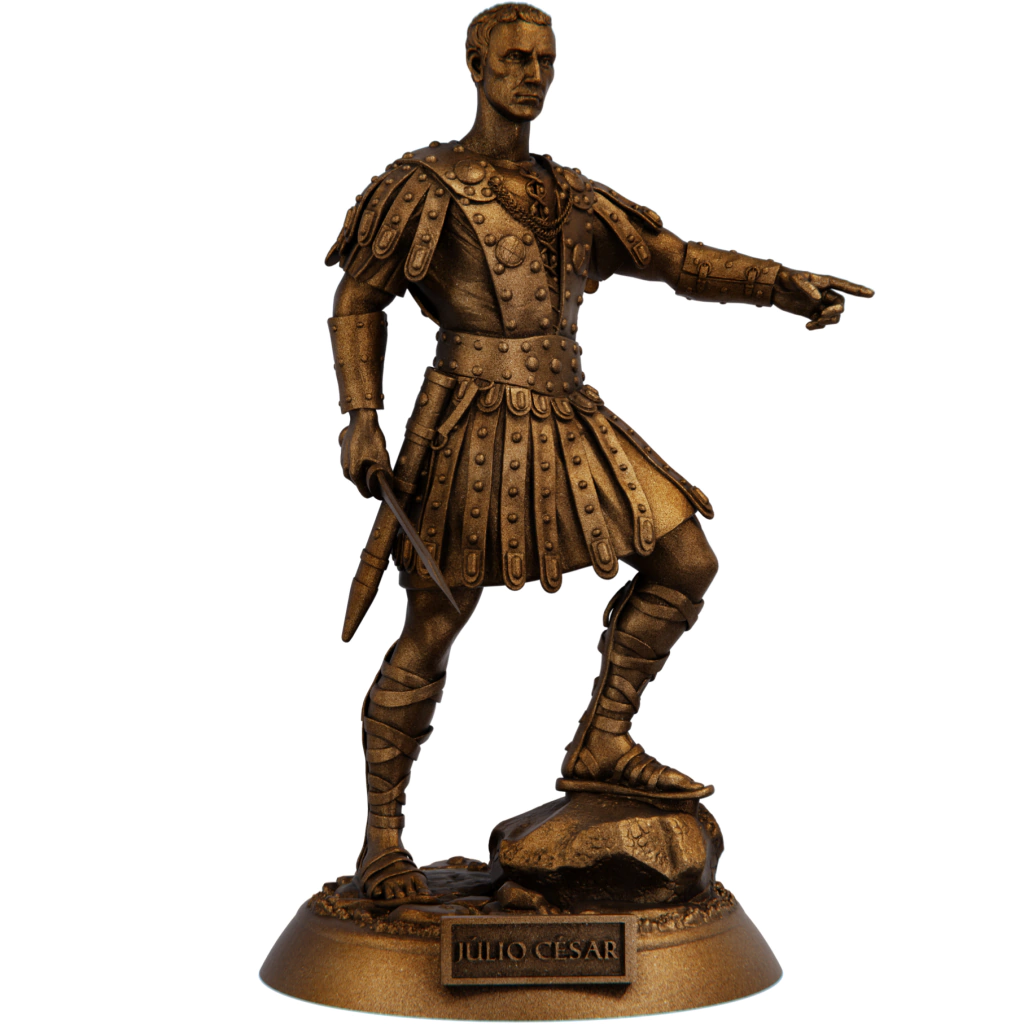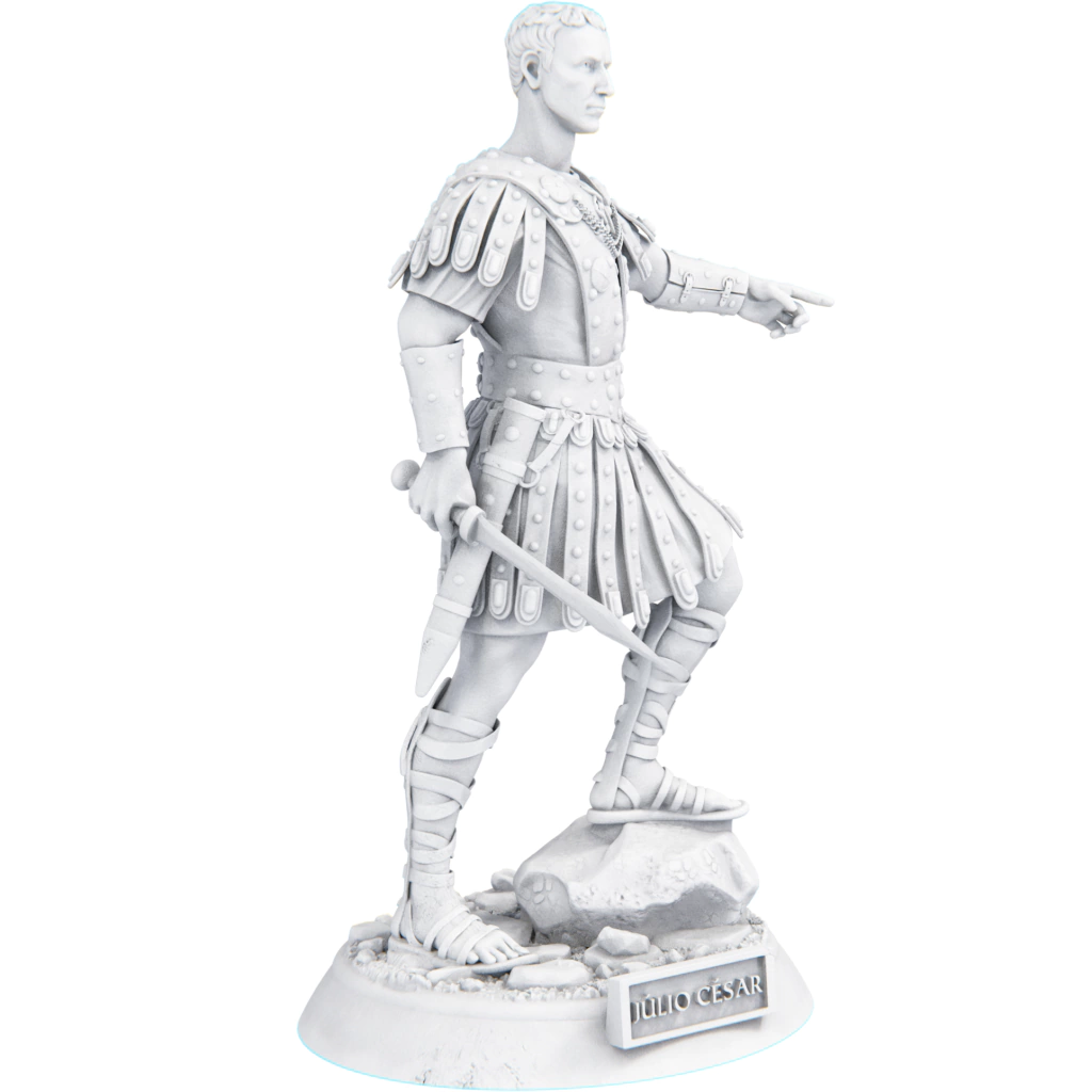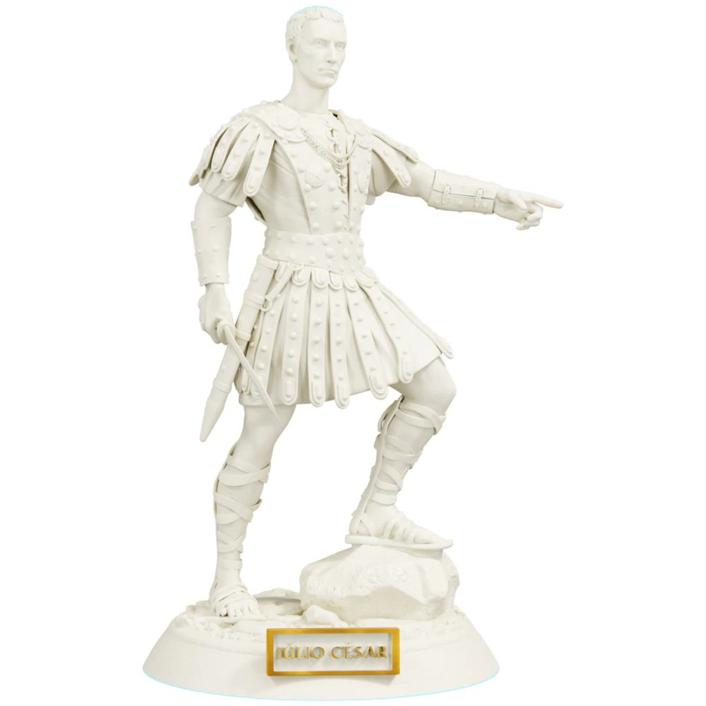 Júlio César foi um general e estadista romano que desempenhou um papel crítico nos eventos que levaram ao fim da República Romana e à ascensão do Império Romano. Ele nasceu em 100 aC e ganhou destaque como líder militar durante as Guerras da Gália e a Guerra Civil. Ele era conhecido por suas táticas militares excepcionais e sua capacidade de liderar e inspirar suas tropas. Também foi um orador talentoso, e seus discursos e escritos se tornaram famosos ao longo da história.
