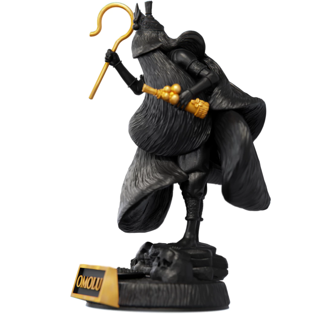 Omolu é o orixá das doenças, da cura e dos mistérios profundos ligados à vida e à morte. Sua figura é temida e respeitada, pois ele transita entre o sofrimento humano e o alívio das dores. Coberto com palhas que escondem seu rosto, Omolu guarda os segredos que não podem ser ditos — e é justamente por esse véu de mistério que sua presença impõe silêncio e reverência por onde passa.