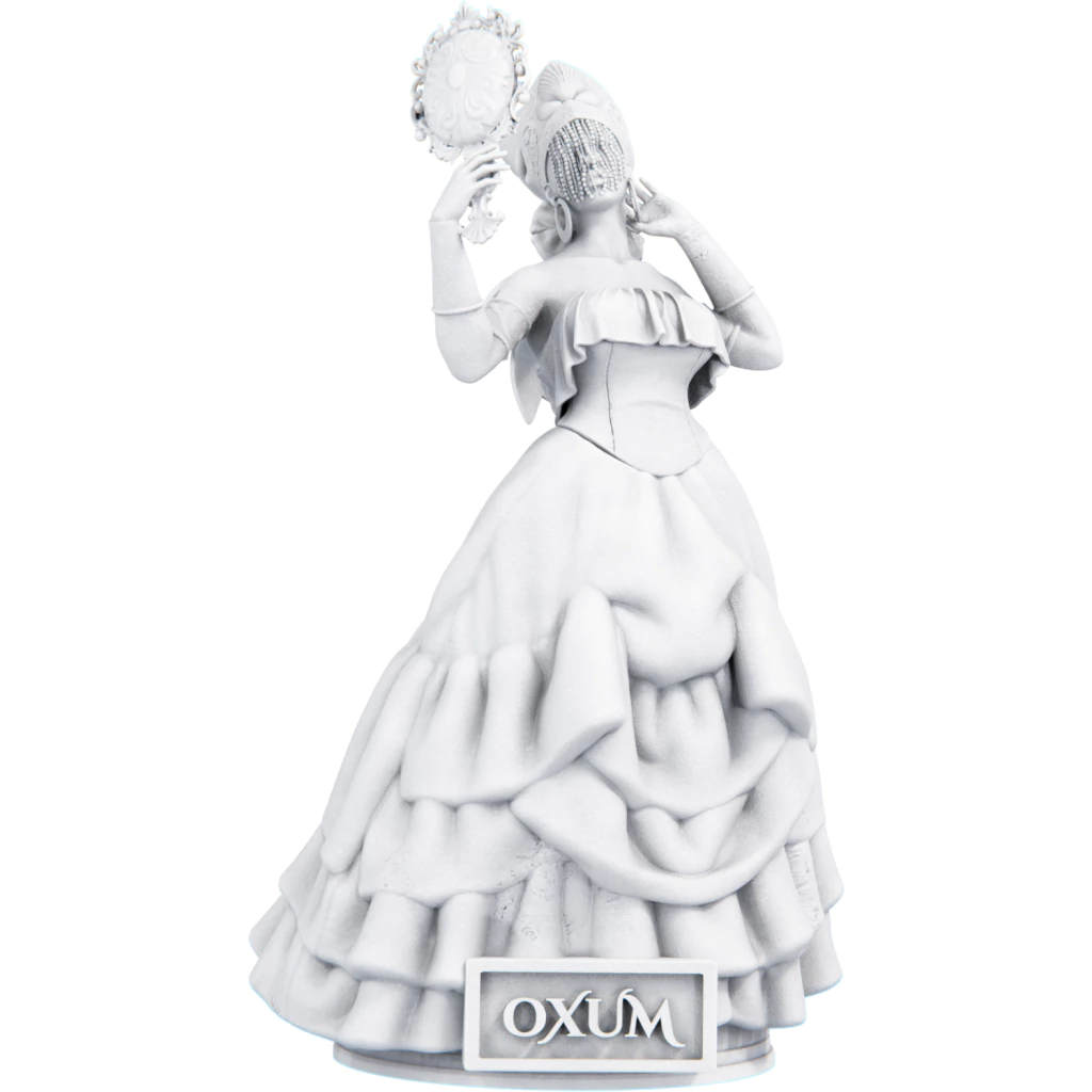 Oxum é a dona das águas doces, dos rios que serpenteiam a terra levando vida por onde passam. Seu reflexo brilha nas correntezas, dourado como o ouro, símbolo de sua riqueza e poder. Mas sua maior força não está apenas na abundância material, e sim na delicadeza e na sabedoria com que conduz os caminhos daqueles que a buscam. Em muitas histórias, ela aparece como uma deusa maternal, acolhendo e protegendo, mas também como uma mulher determinada, capaz de enfrentar qualquer desafio para garantir o que é seu.