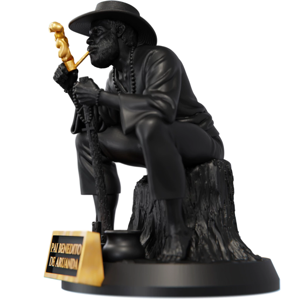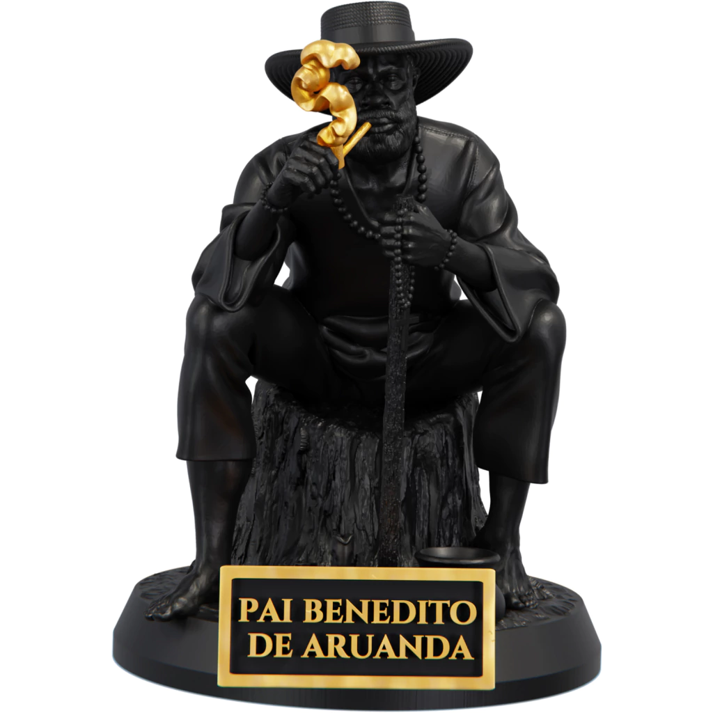 Pai Benedito de Aruanda é uma das entidades mais queridas dentro da Umbanda, conhecido por sua sabedoria serena e seu jeito acolhedor de lidar com os que o procuram. Diz-se que, em vida, foi um velho escravizado, de fala mansa, que carregava no olhar a força ancestral de seus antepassados. Mesmo diante das dores do cativeiro, mantinha viva a fé e o conhecimento que aprendera com os mais velhos, ensinando aos outros que a força verdadeira vem do coração em paz.